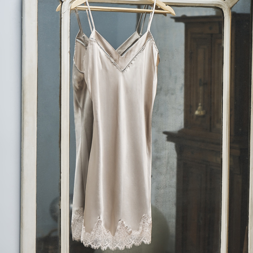 V字薄紗鑲嵌 × 波浪蕾絲下擺
