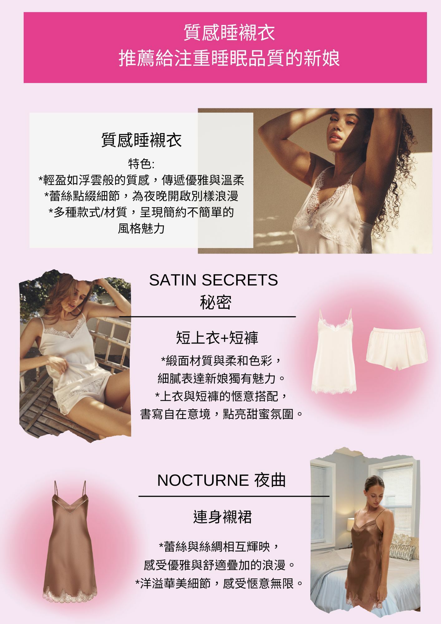 想要展現美好身姿,選對內在搭配很重要。不同款式、色系、材質,帶來不一樣的效果與氛圍感。從婚禮這一天,到未來每一天,