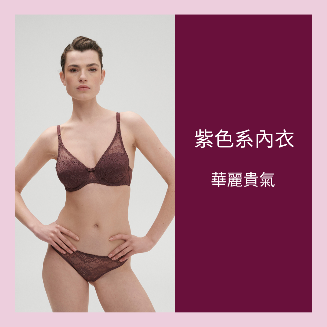 紫色是一個性感而美麗的顏色,因為過去製作紫色的原料取得不易,因此紫色被人們認定為奢華、高貴的象徵。想要營造輕奢風範與優雅的氣質,就用紫色內衣來表現!