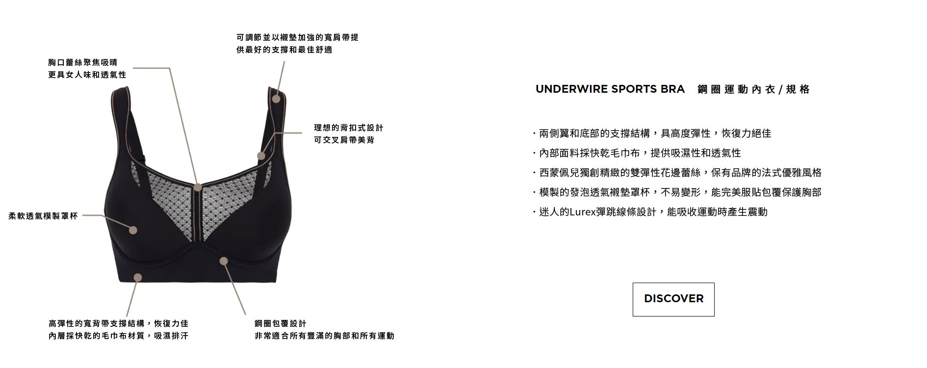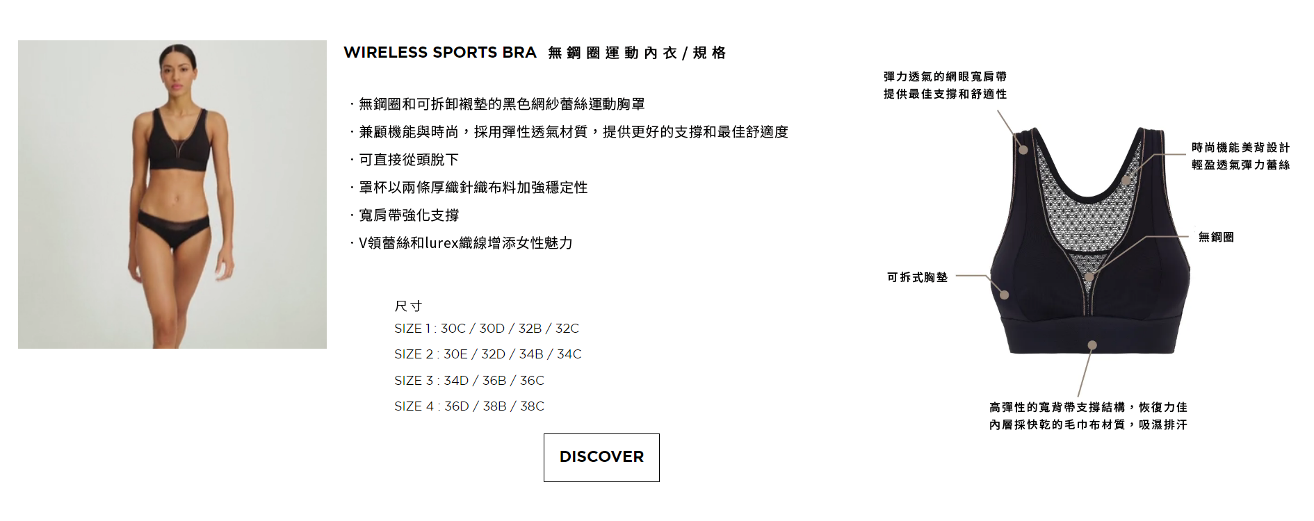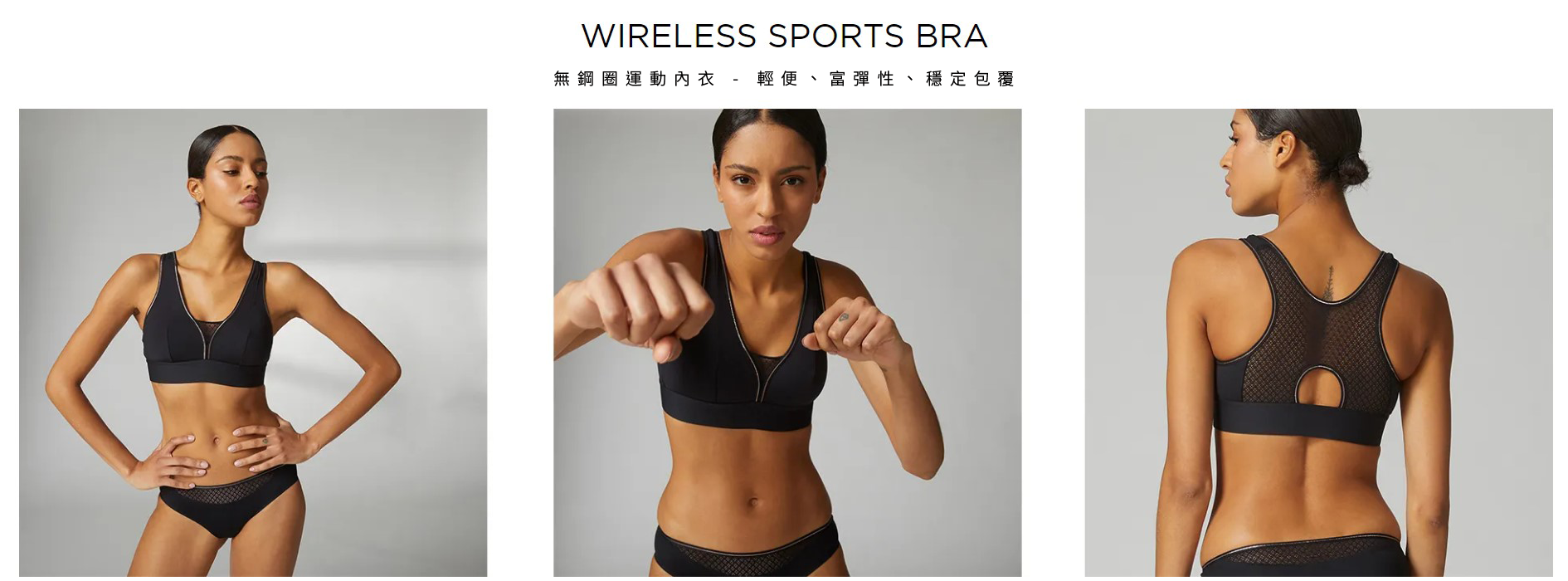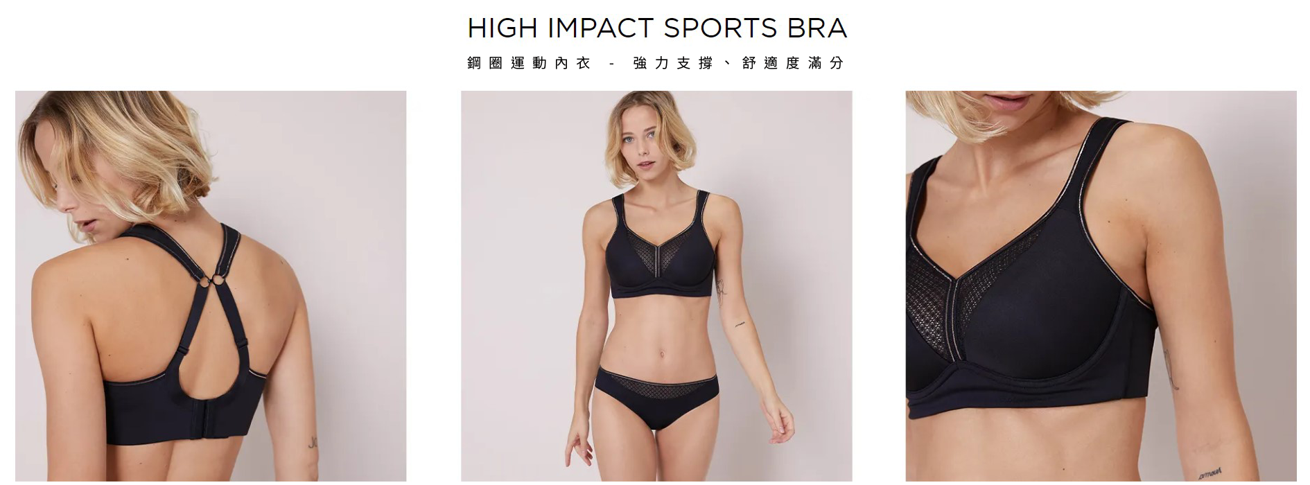 另外系列中也有提供尺寸至G罩杯的有鋼圈運動內衣,將加強塑型和舒適穿著感美好呈現。