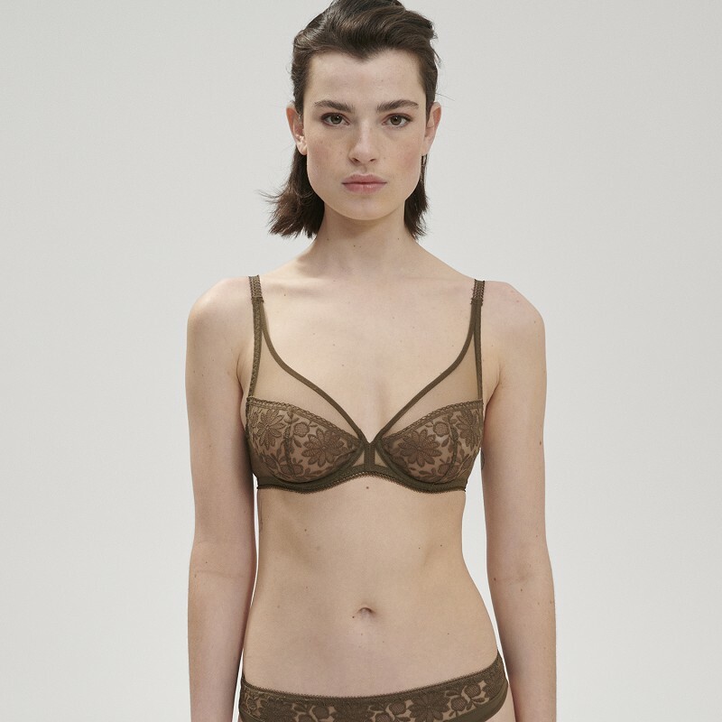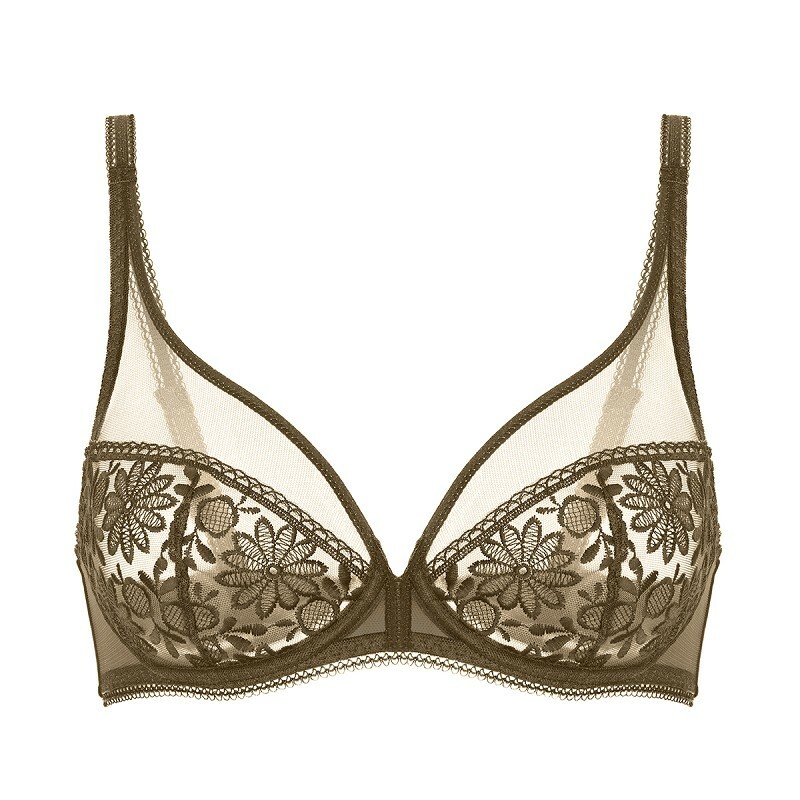 -花卉圖樣立體浮雕效果呈現精緻質感,搭配罩杯上緣膚透薄紗設計,打造極致魅力視覺效果
