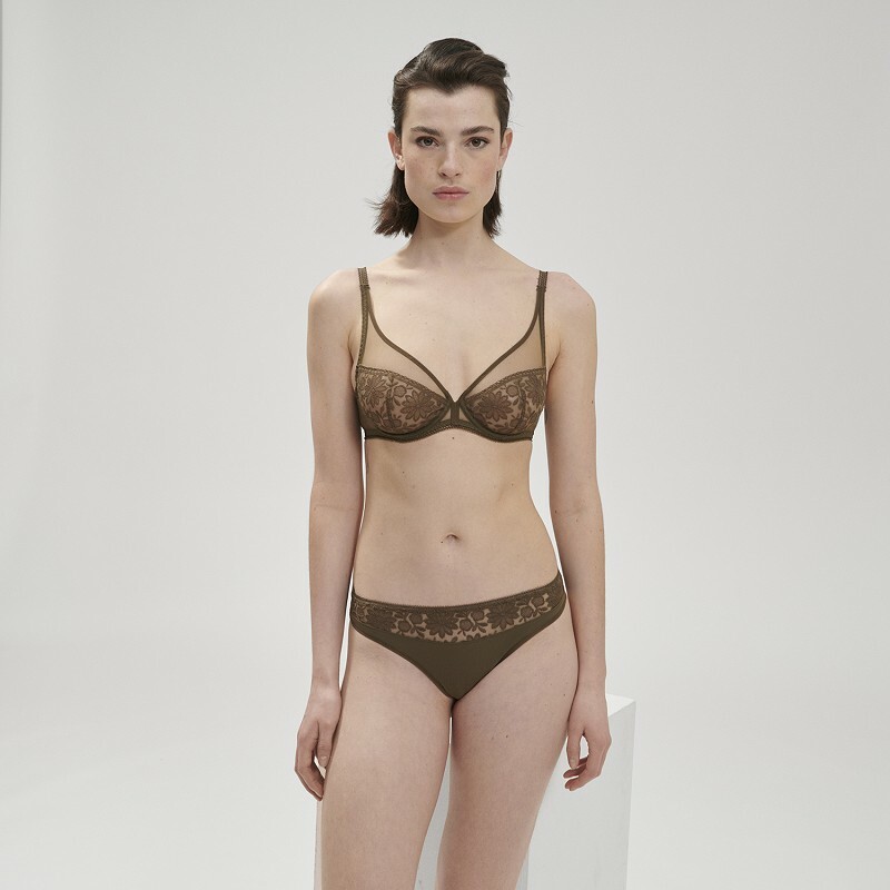 【AMAZONE  亞馬遜 全罩V領無襯胸罩 -草原墨綠色】