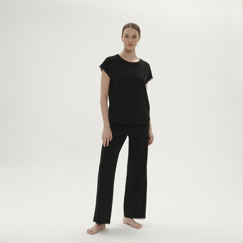 柔軟環保的針織材質長褲,褲腳以蕾絲裝飾
