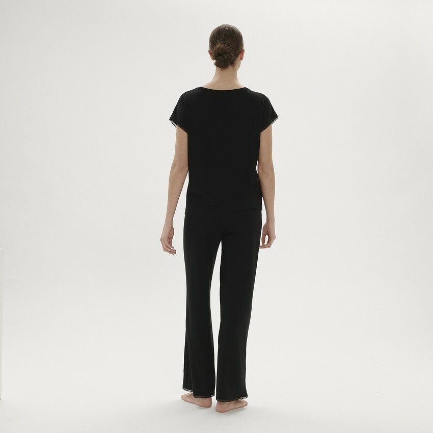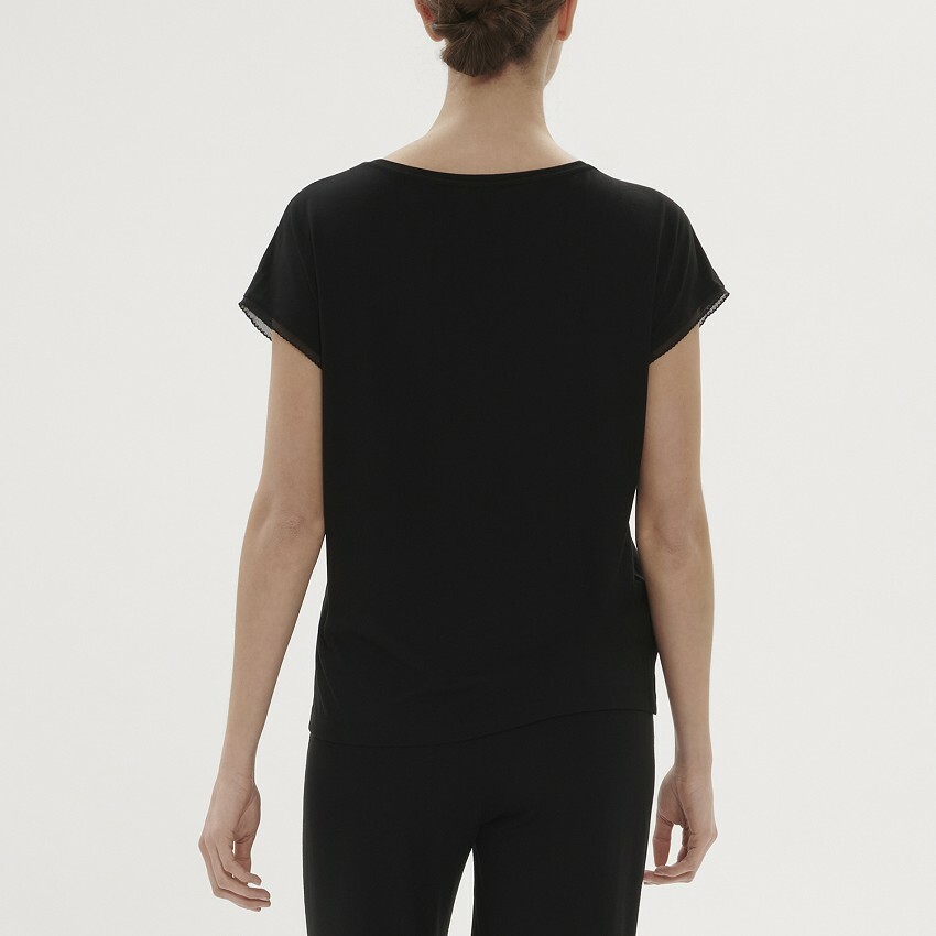柔軟環保的針織材質 T-SHIRT,領口與袖口以蕾絲裝飾