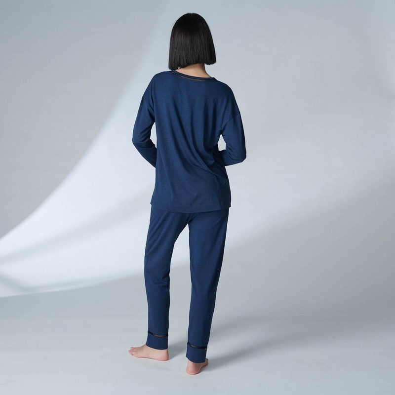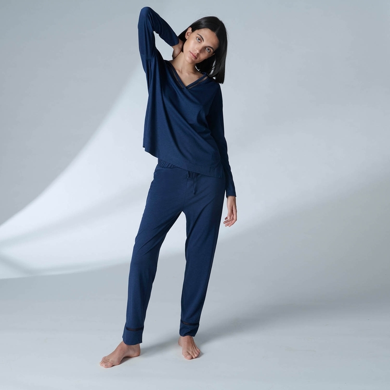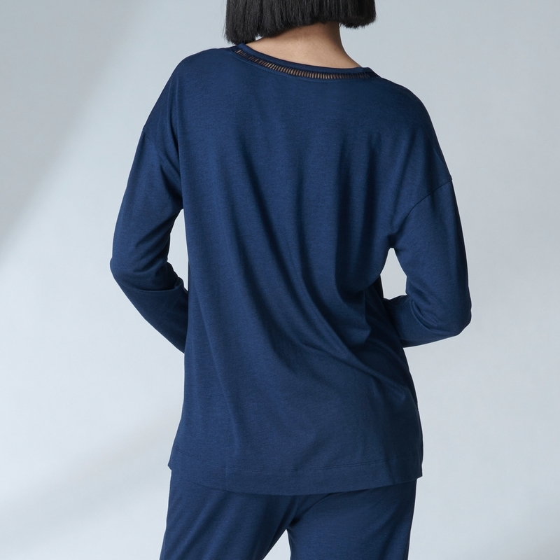 深V領口處飾以充滿女性調的凸邊花紋細節裝飾