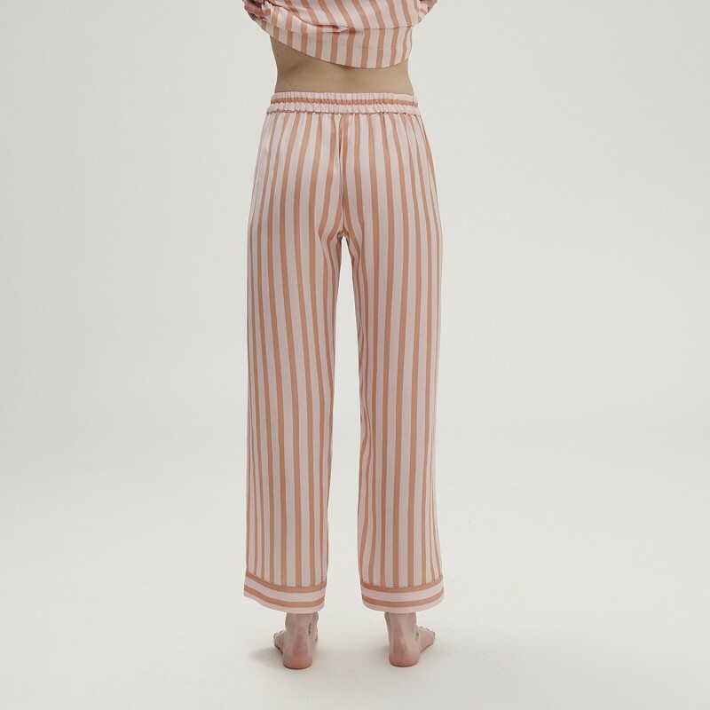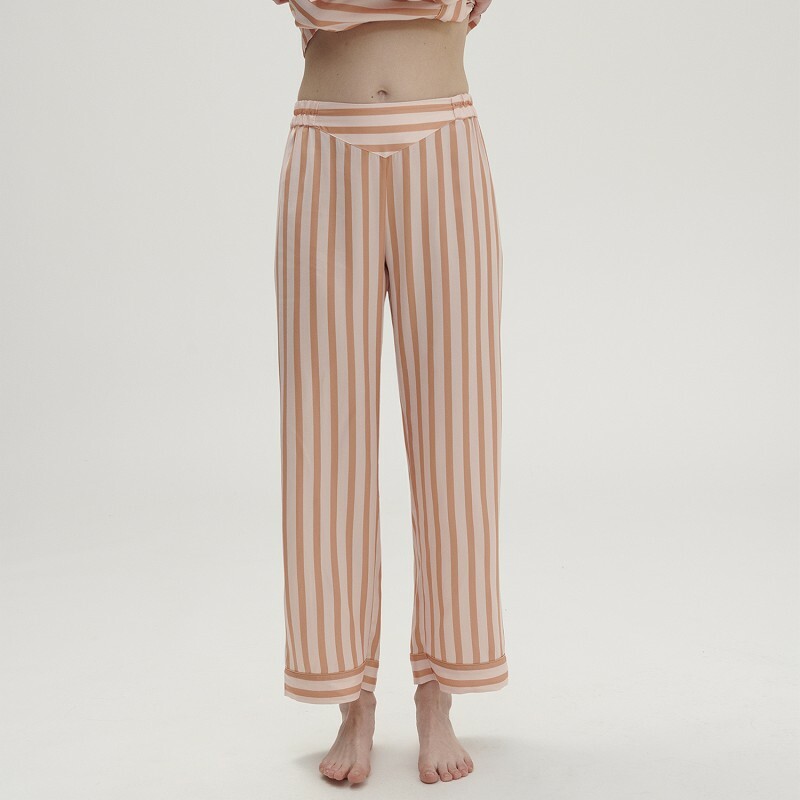 寬鬆剪裁長褲/睡褲採用緹花緞布面料