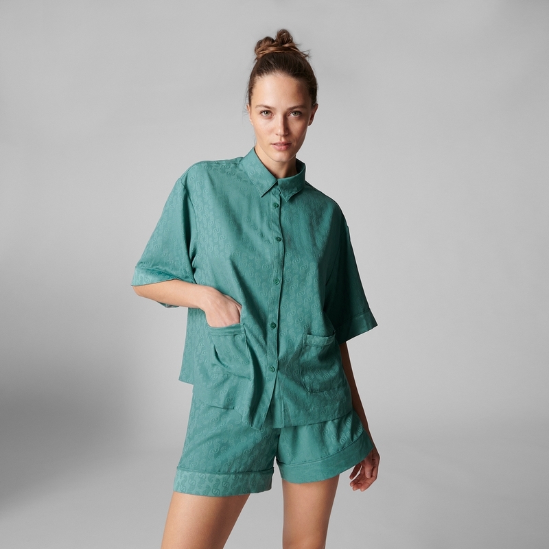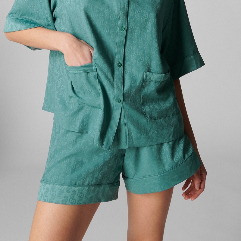 寬鬆剪裁短褲/睡褲採用緹花緞布面料