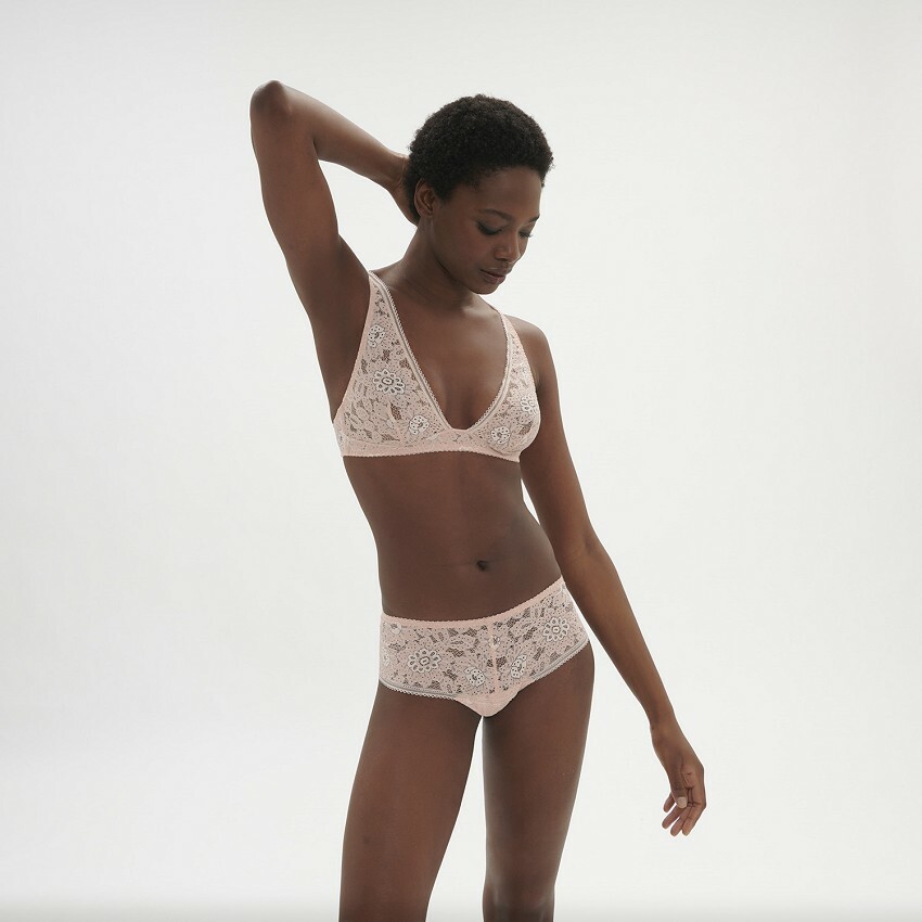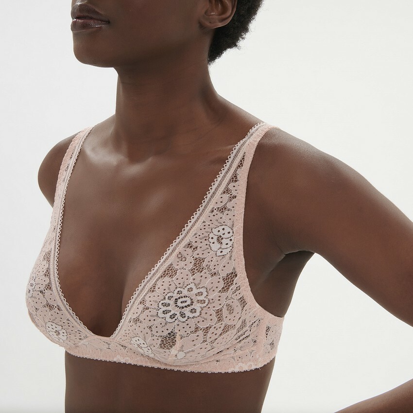 罩杯採用全蕾絲面料,垂直褶線剪裁,讓胸型更立體