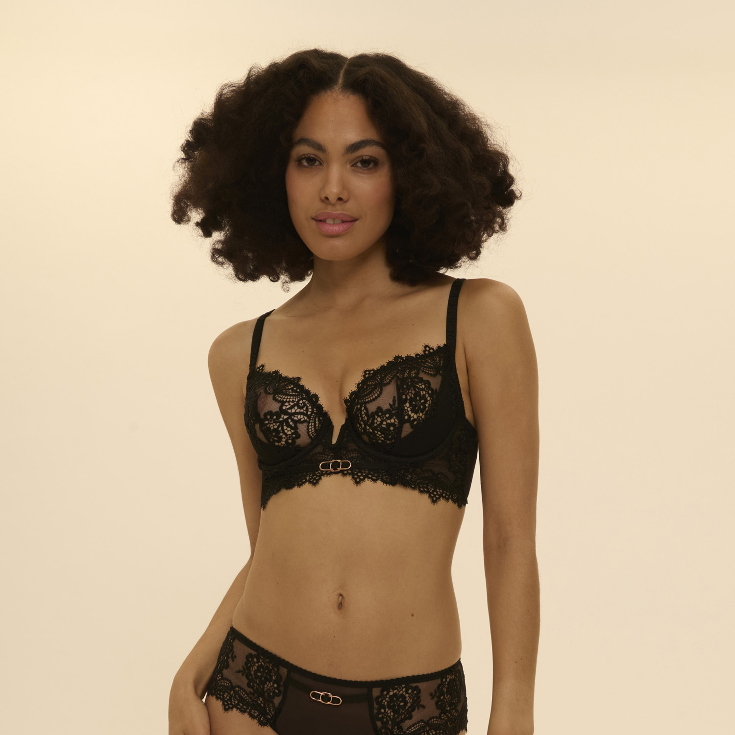 【IDOLE 星光 蕾絲深 V 集中型墊高有鋼圈胸罩 經典黑】