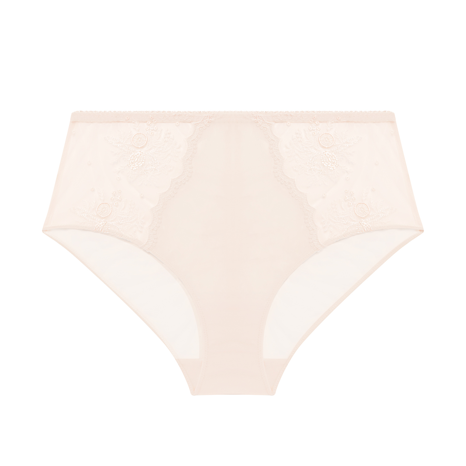 高腰三角內褲,採用再生刺繡與薄紗面料