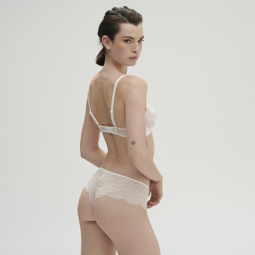背面蕾絲面料,扇貝型飾邊設計,打造衣物下的隱形效果