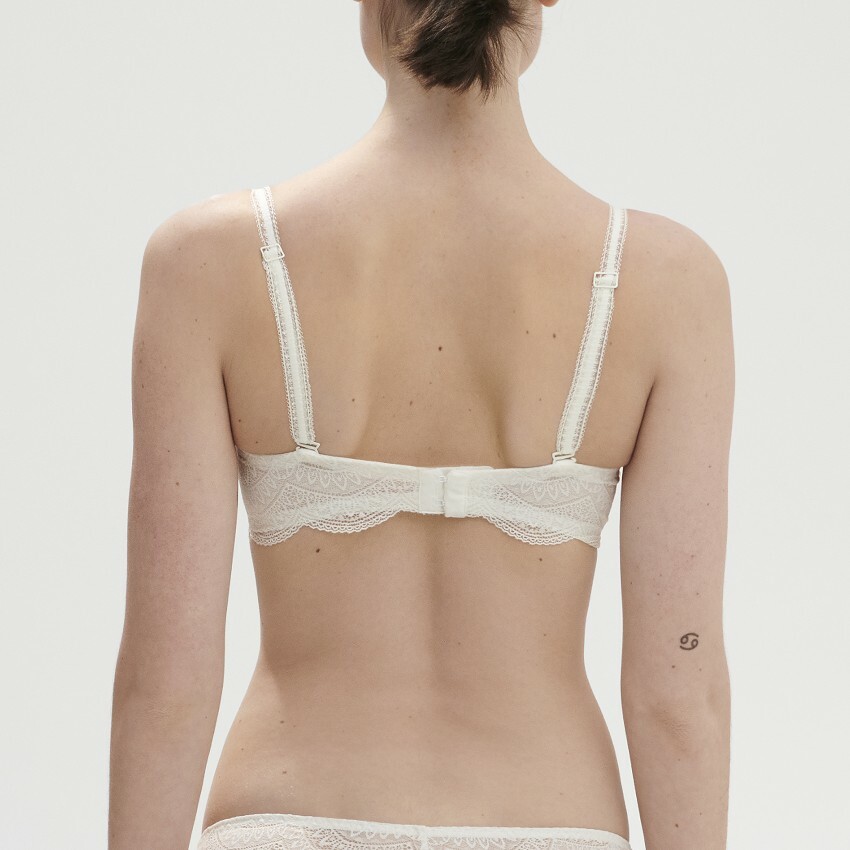 全蕾絲製背襯飾以彈性薄紗,強化胸部支撐力