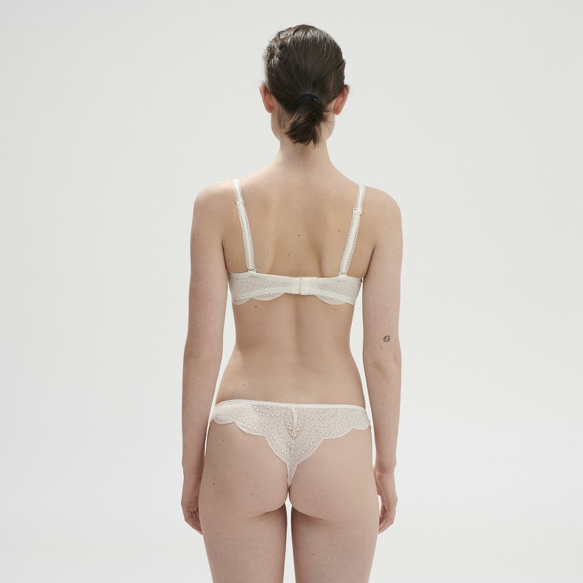 光滑罩杯設計打造隱形效果,下緣背帶飾以蕾絲設計,展露女性深度美感