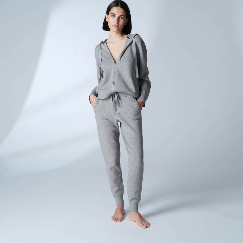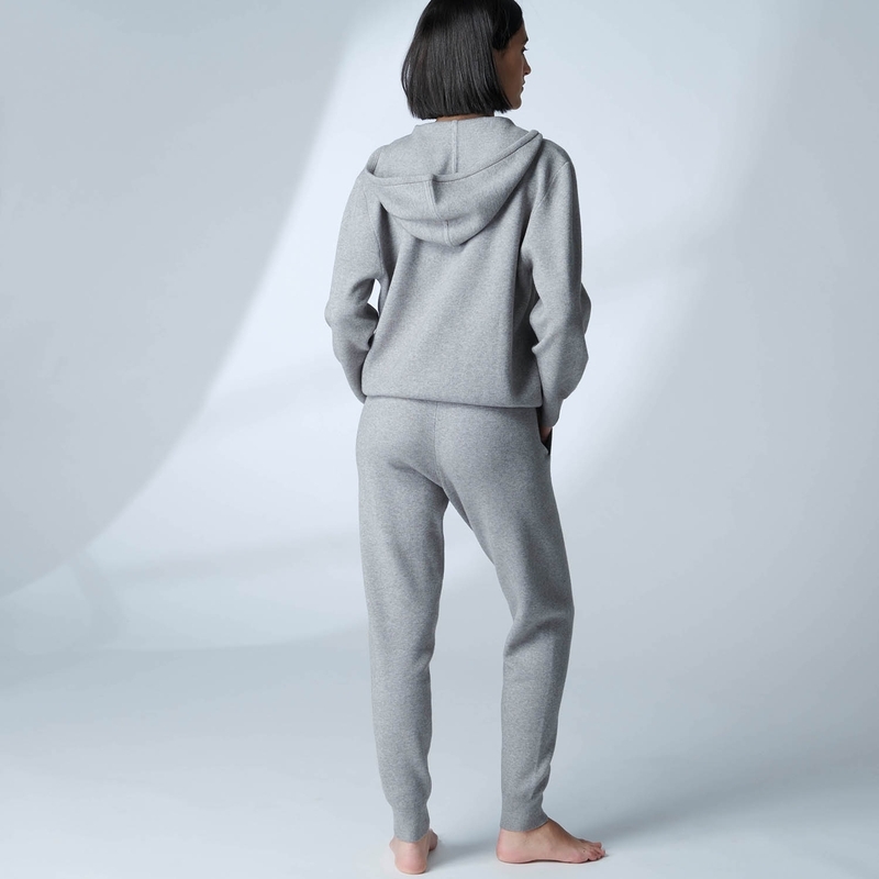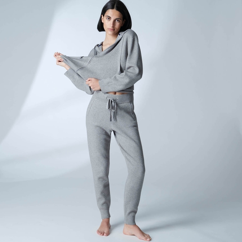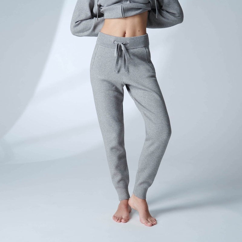 抽繩式鬆緊帶長褲,兩側有口袋設計