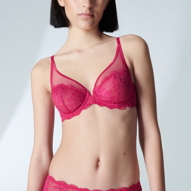 D罩杯以上內衣,罩杯上圍處採用硬式薄紗襯裡,提供完美支撐力