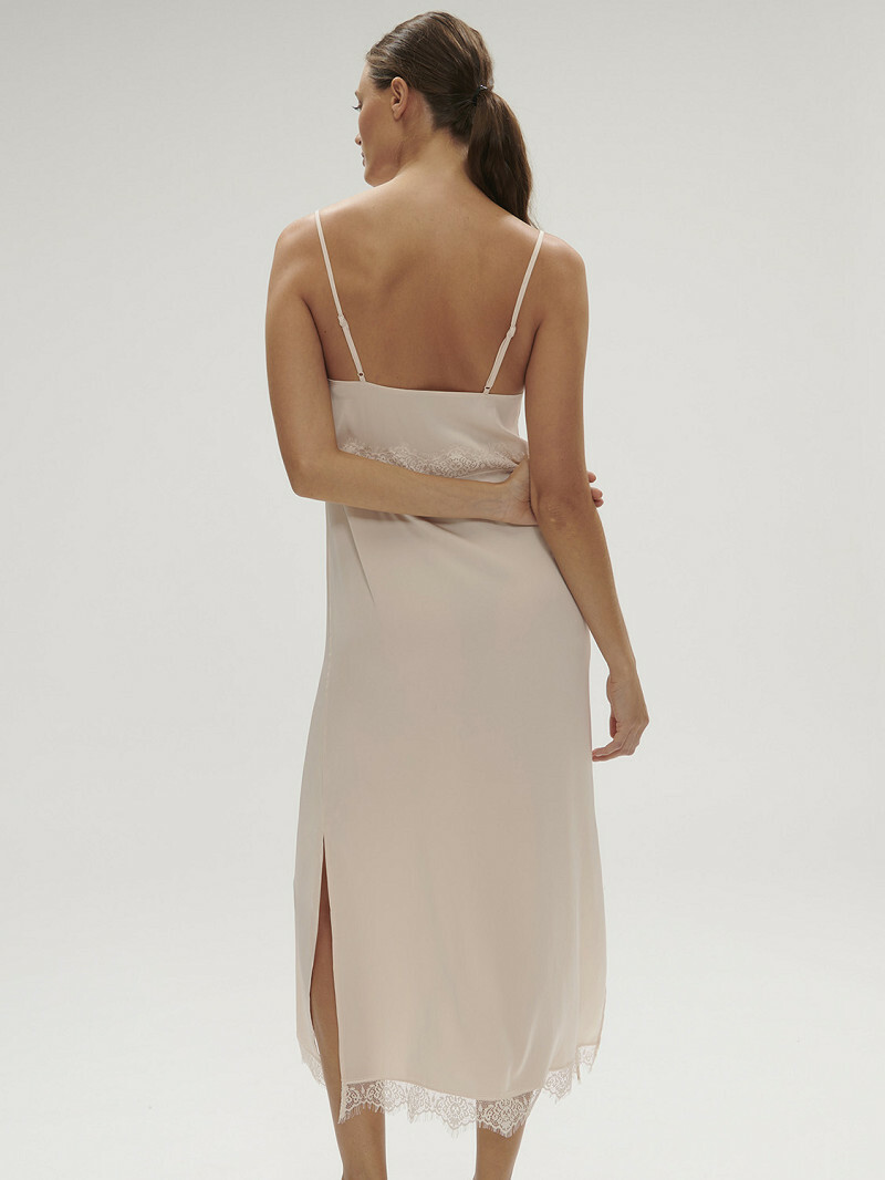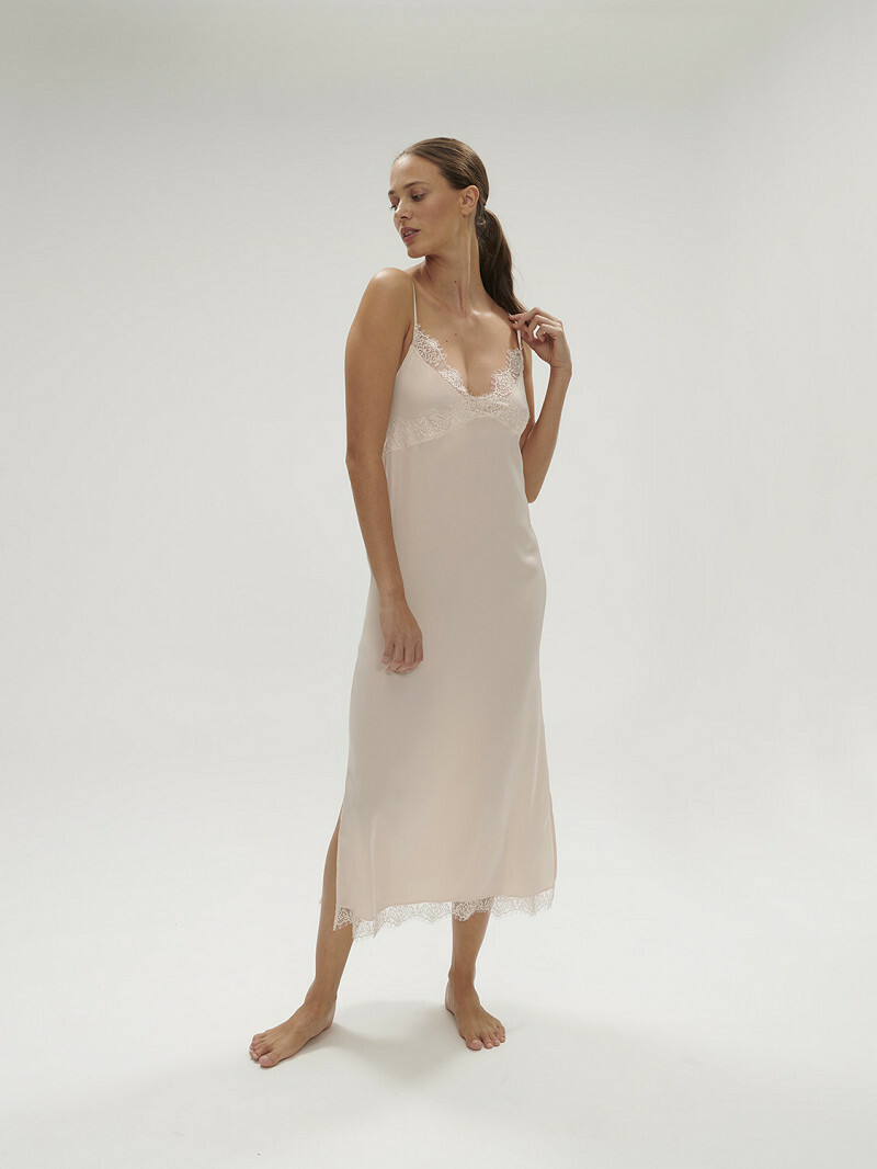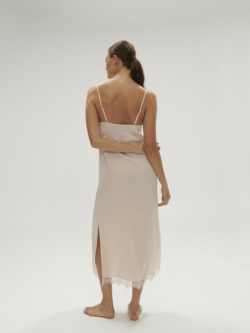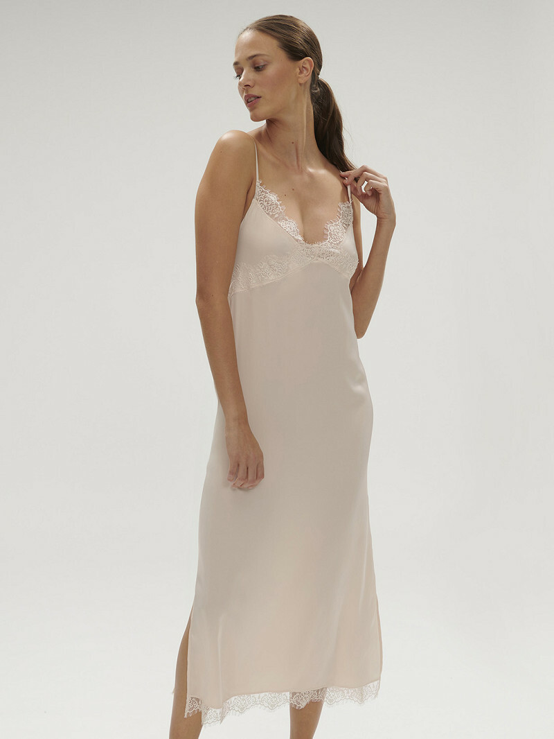 緞面結合蕾絲、充滿法式風情的連身長襯裙