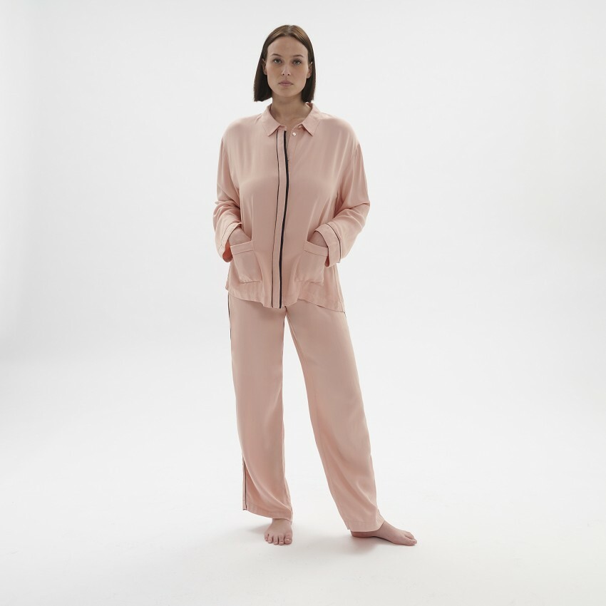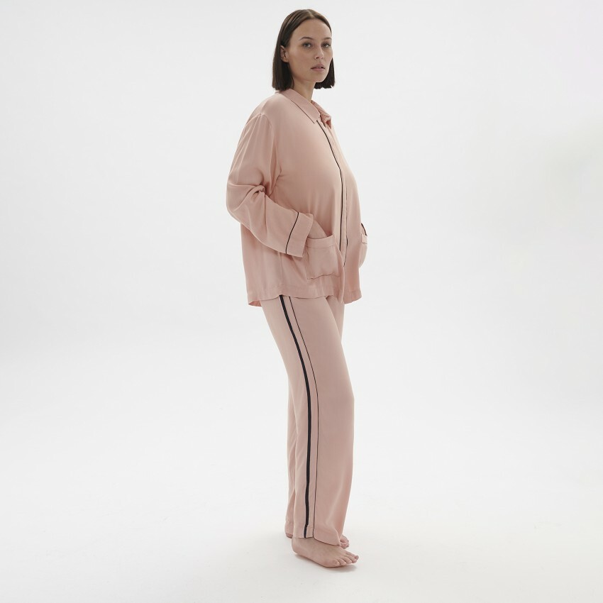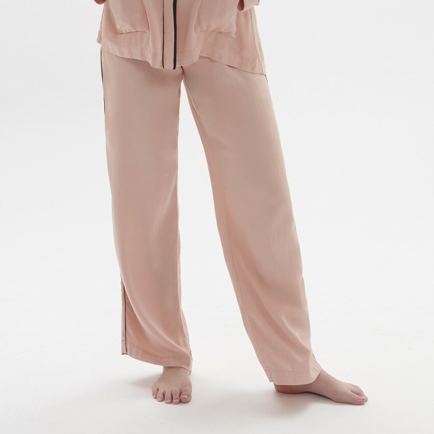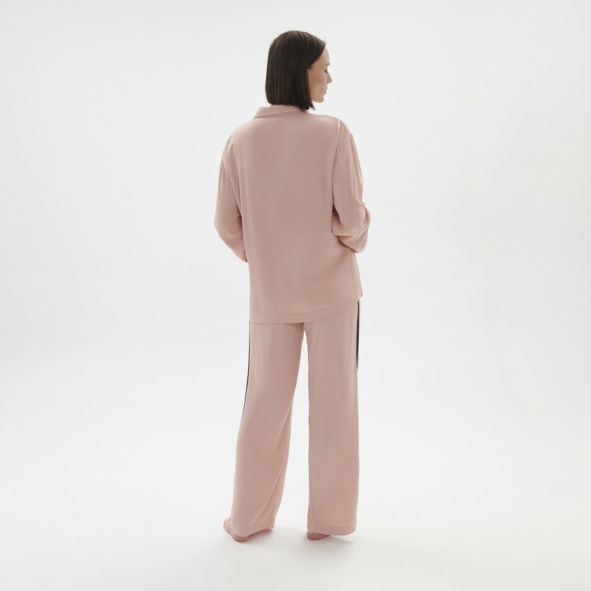 絲滑柔軟的觸感,搭配煙燻玫瑰色柔和光澤,輔以精緻剪裁與細節,演繹舒適質感非凡之作。