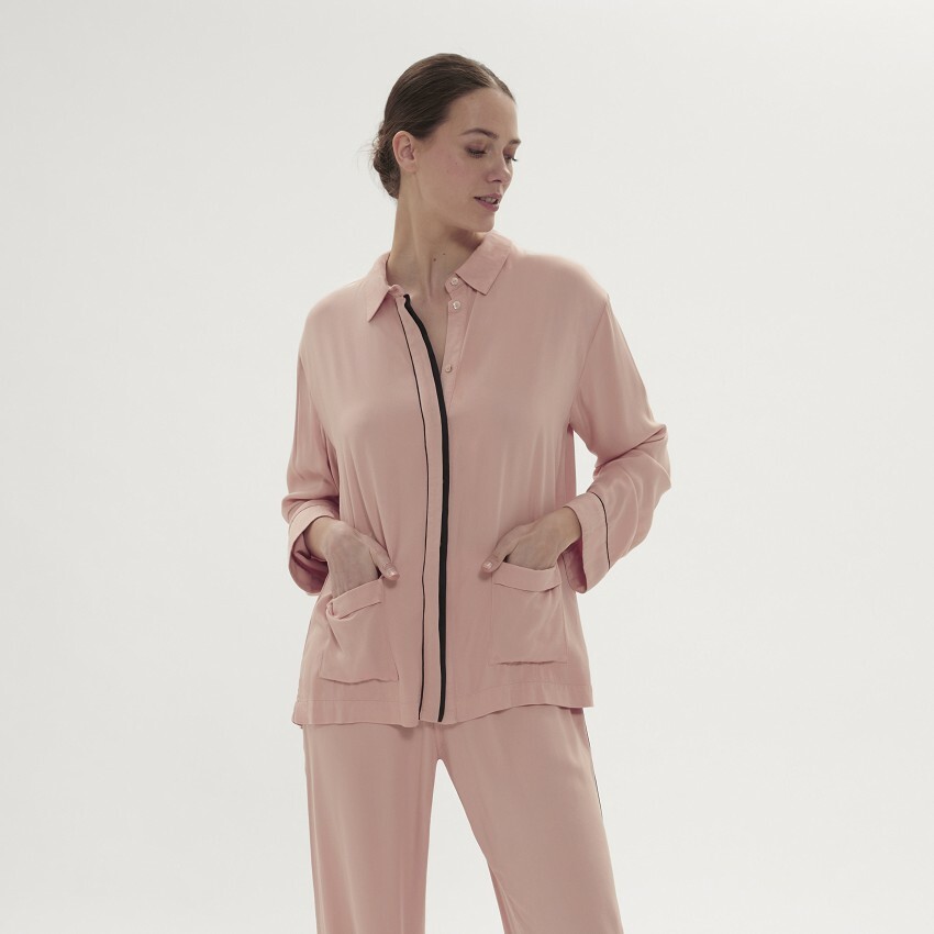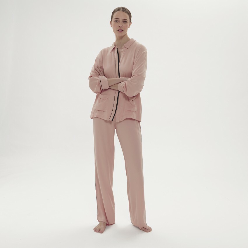 長袖男友風襯衫式睡衣,雙口袋設計,以寬鬆剪裁搭配舒適面料,徜徉於自在隨性中,享受放鬆時刻