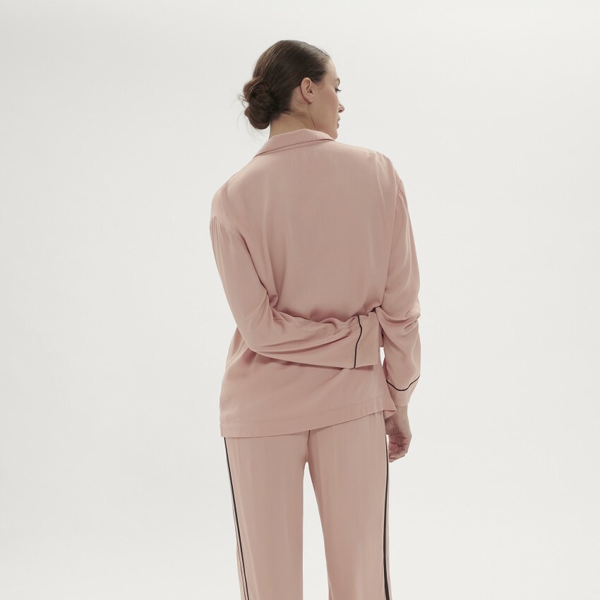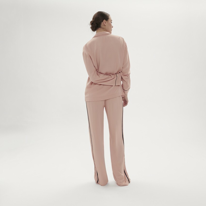 絲滑柔軟的觸感,搭配煙燻玫瑰色柔和光澤,輔以精緻剪裁與細節,演繹舒適質感非凡之作。
