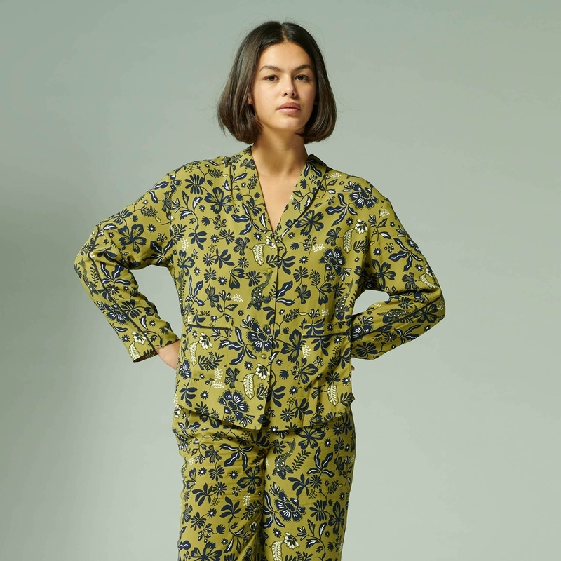 【SONGE 夢 短罩衫 綠橄欖印花】