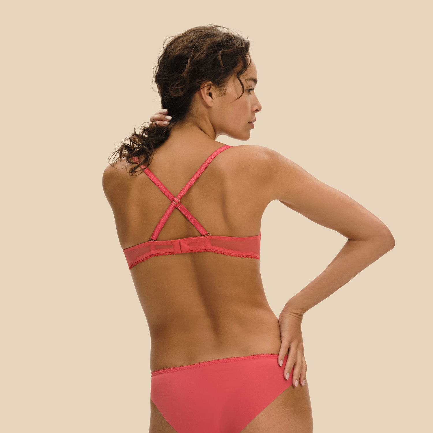 集中托高型鋼圈胸罩,採用再生刺繡面料